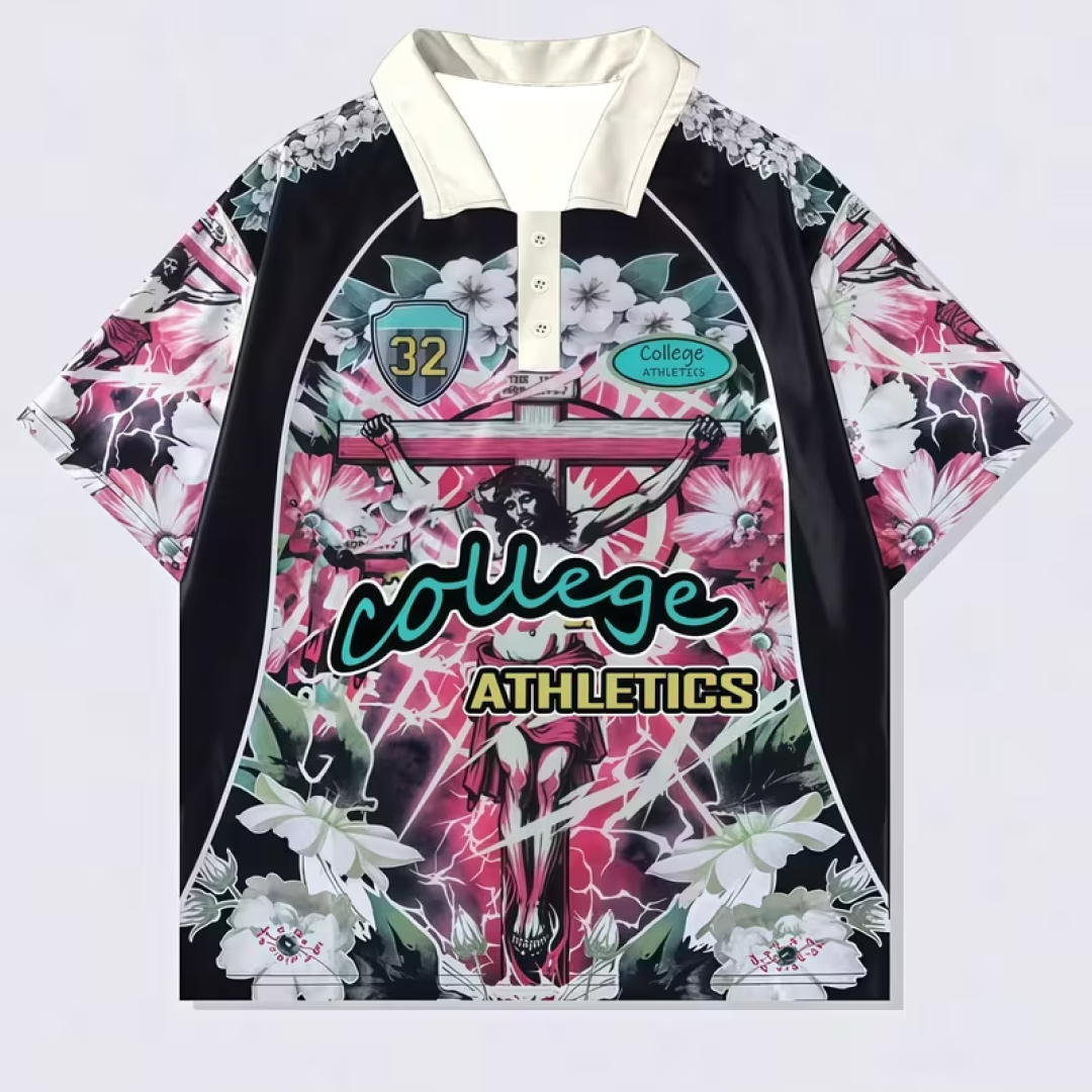 / Men’s Floral Print Casual Short Sleeve Polo