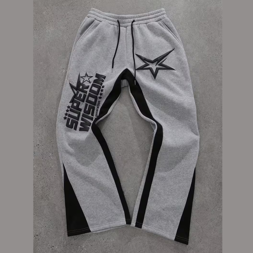 Street Style Letter Star Printed Sports Pants