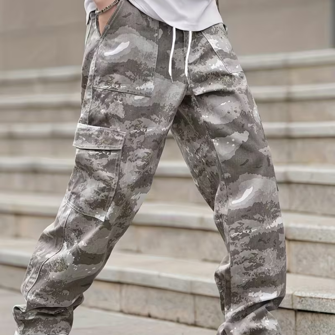 Vintage Multi-Pocket Print Camouflage Cargo Pants
